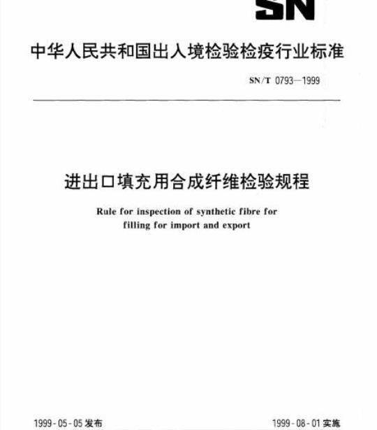 SN/T 0793适用于进出口填充用合成纤维的检验。
