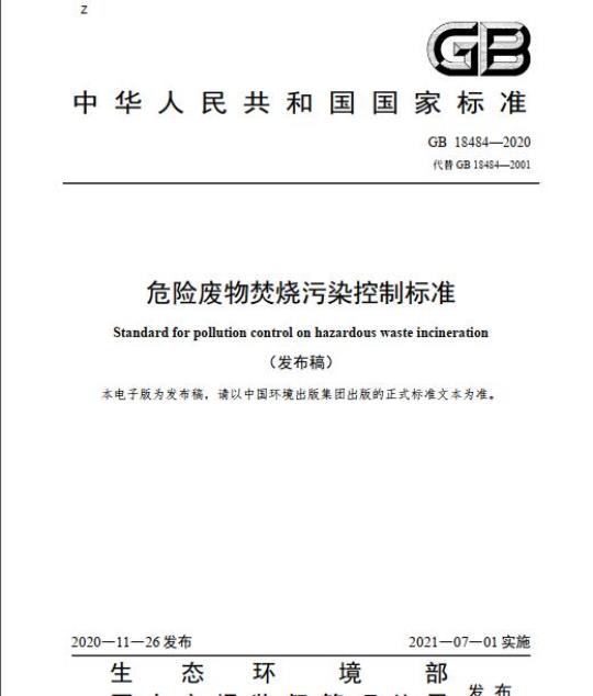 本标准规定的污染物排放限值为基本要求。地方省级人民政府对本标准中未作规定的大气、水污染物控制项目,可以制定地方污染物排放标准;对本标准已作规定的大气、水污染物控制项目,可以制定严于本标准的地方污染物排放标准。本标准由生态环境部固体废物与化学品司、法规与标准司组织制订。本标准主要起草单位:沈阳环境科学研究院、中国科学院大学、生态环境部对外合作与交流中心、生态环境部环境标准研究所、国家环境保护危险废物处置工程技术(沈阳)中心。本标准生态环境部2020年11月26日批准。本标准自2021年7月1日起实施。自本标准实施之日起,《危险废物焚烧污染控制标准》(GB18484-2001)废止。各地可根据当地生态环境保护的需要和经济、技术条件,由省级人民政府批准提前实施本标准。