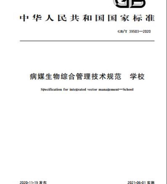 GB/T 39503规定了学校病媒生物综合管理的原则、程序和方法。