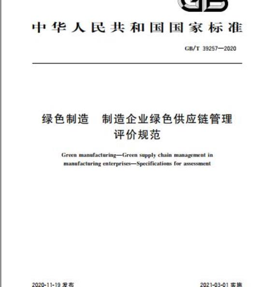 GB/T 39257规定了制造企业绿色供应链管理评价的目的和范围、企业基本要求、评价原则及要求、评价流程及评价报告要求。