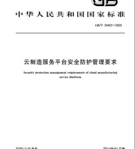 GB/T 39403-2020.Security protection management requirements of cloud manufacturing service platform.