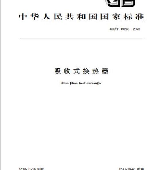GB/T 39286-2020.Absorption heat exchanger.