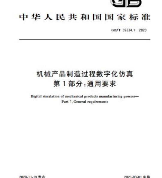 GB/T 39334.1-2020.Digital simulation of mechanical products manufacturing process-Part 1: General requirements.