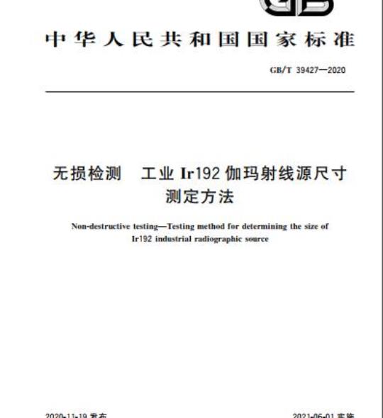GB/T 39427-2020.Non-destructive testing-Testing method for determining the size of Ir192 industrial radiographic source.