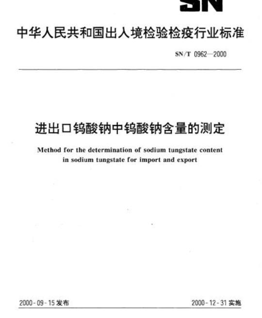 SN/T 0962规定了进出口钨酸钠中钨酸钠含量的测定方法。