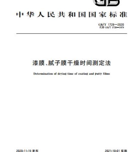 GB/T 1728规定了在规定的干燥条件下测定漆膜、腻子膜干燥时间的方法。