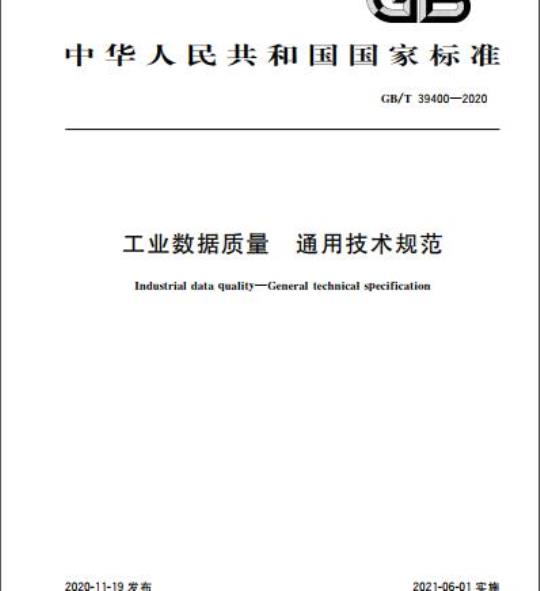 GB/T 39400规定了工业数据质量持续改进的模型,以及工业数据质量的描述、识别、评价、控制和报告的要求。