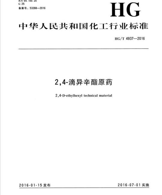 HG/T 4937适用于由2,4-滴异辛酯及生产中产生的杂质组成的2,4-滴异辛酯原药。