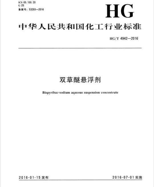 HG/T 4942适用于由双草醚原药、助剂和填料加工而成的双草醚悬浮剂。