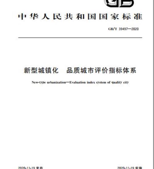 GB/T 39497规定了新型城镇化建设过程中,品质城市的评价指标体系、指标内涵与计算方法以及数据采