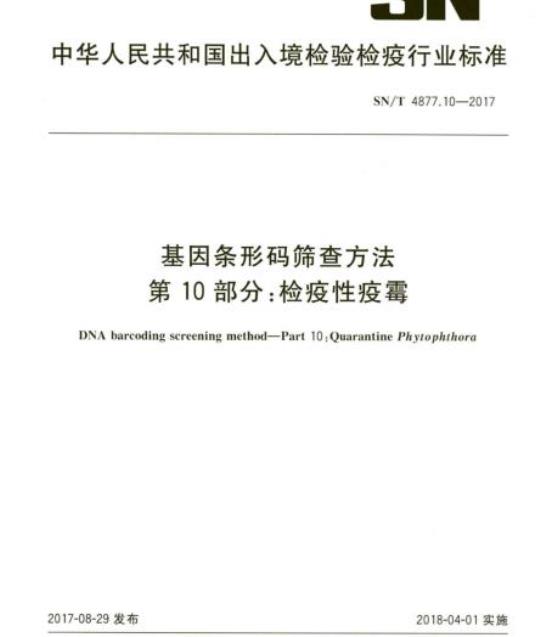 中文名称:基因条形码筛查方法第10部分:检疫性疫霉