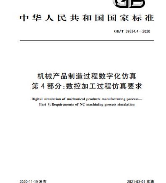 GB/T 39334.4-2020.Digital simulation of mechanical products manufacturing process-Part 4: Requirements of NC machining process simulation.