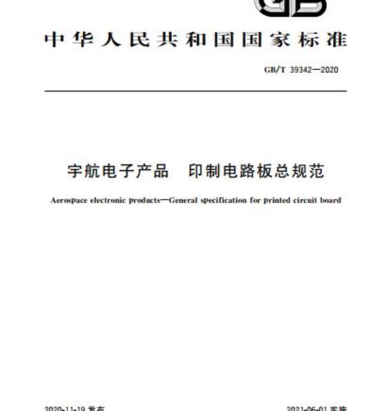 GB/T 39342适用于宇航电子产品用印制电路板(以下简称“印制板”)的设计、生产及检验。