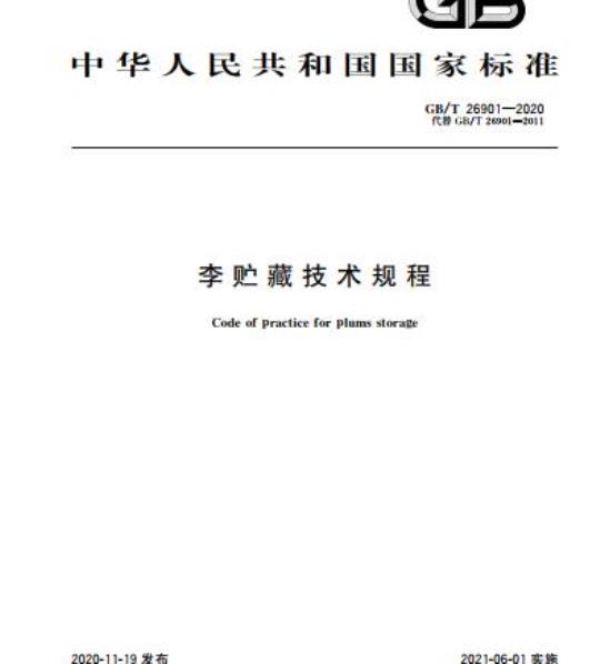 GB/T 26901适用于中国李(PrunussalicinaLindl.)的新鲜果实商业贮藏和运输,其他种类的李可参照执行。