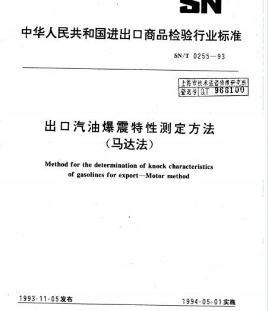 SN/T 0255规定了出口汽油爆震特性的测定方法。