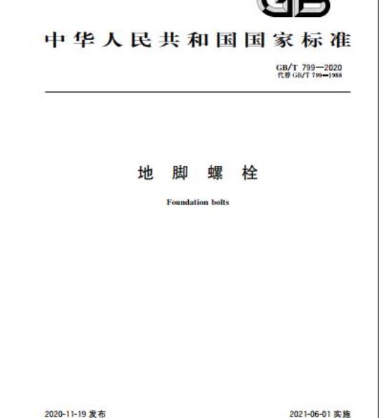GB/T 799规定了地脚螺栓的型式尺寸、技术条件和引用标准、标记。