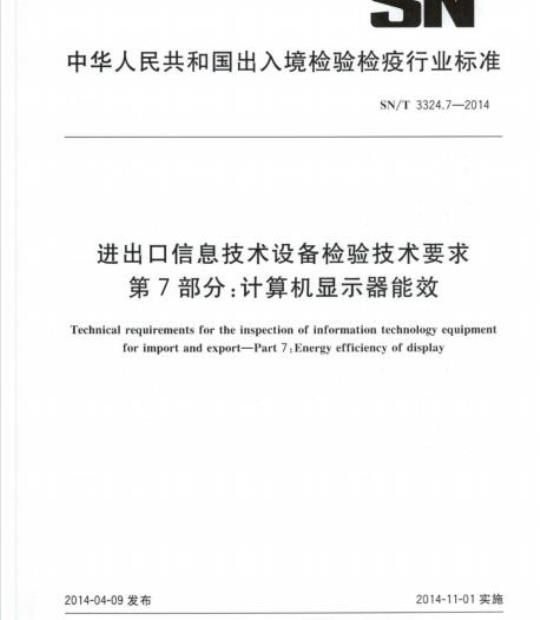 SN/T 3324.7规定了进出口计算机显示器的能效要求、检验及结果判定的方法。