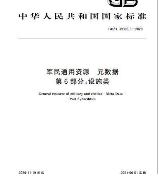 GB/T 39316的本部分规定了军民通用资源设施类元数据及标识符。