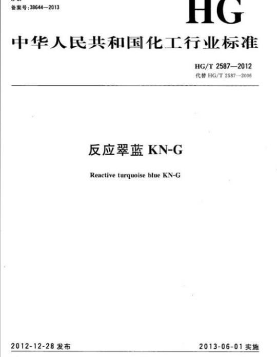 HG/T 2587适用于铜酞氰结构的反应翠蓝KN-G的产品质量控制。
