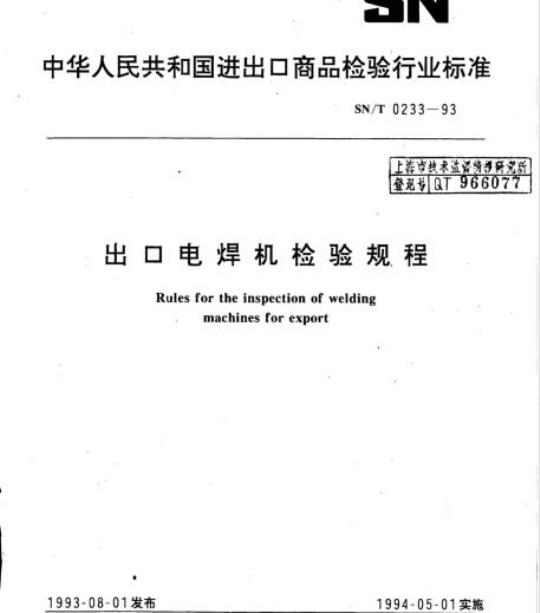 SN/T 0233-93.Rules for the inspection of welding machines for export.