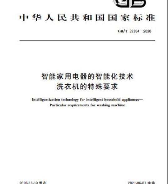 GB/T 39384规定了智能洗衣机的技术要求、检测方法和评价方法。