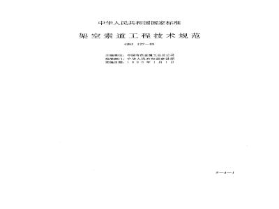 本规范共分八章。其主要内容有:总则、索道设计基本规定、双线循环式货运索道工程设计、单线循环式货运索道工程设计、双线往复式客运索道工程设计、单线循环式客运索道工程设计、索道工程施工、索道工程验收。在实施本规范的过程中,请各单位注意积累资,总结经验,并将需要修改和补充的意见及时函告我公司昆明有色冶金设计研究院,以供修订时参考。中国有色金属工业总公司