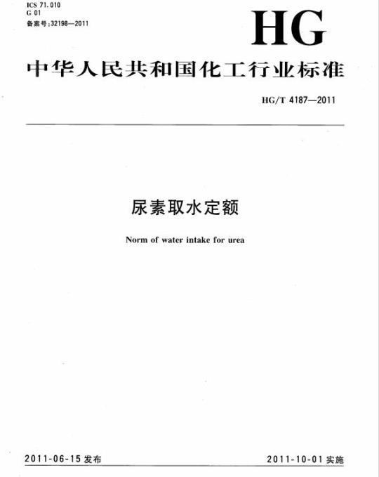 HG/T 4187-2011.Norm of water intake for urea.
