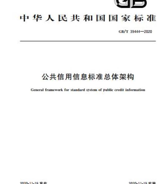 GB/T 39444规定了公共信用信息标准总体架构的基本原则、总体架构和应用要求。