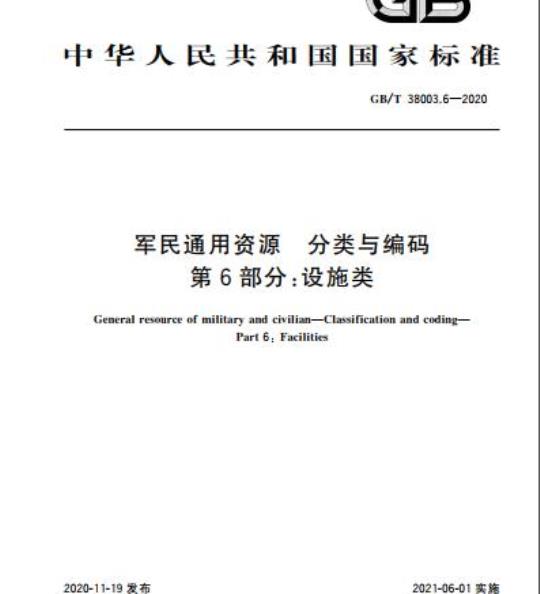 GB/T 38003.6-2020.General resource of military and civilian-Classification and coding-Part 6: Facilities.