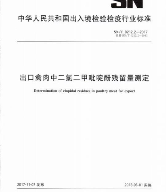 SN/T 0212.2-2017.Determination of clopidol residues in poultry meat for export.