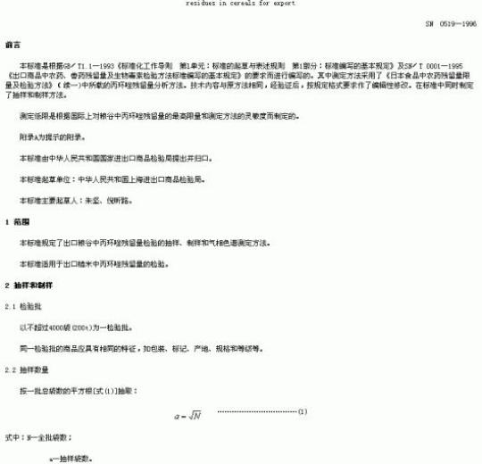 SN 0519规定了出口粮谷中丙环唑残留量检验的抽样、制样和气相色谱测定方法。