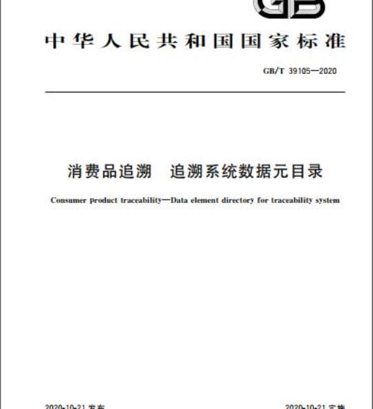 GB/T 39105规定了消费品追溯系统的数据元表示、数据元模型、数据元目录、数据元使用与扩展。