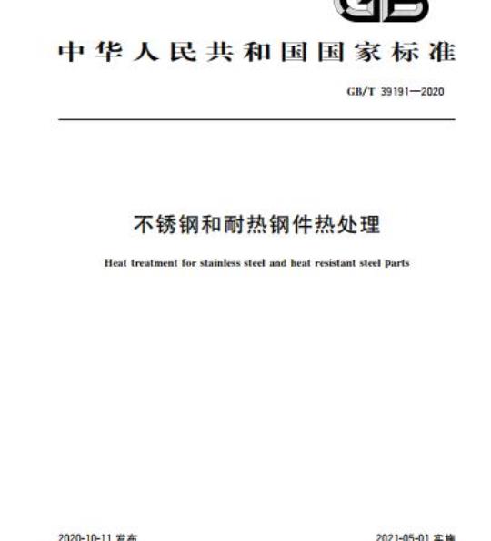 GB/T 39191规定了不锈钢和耐热钢件常用材料、热处理方法及工艺、热处理设备、工艺过程、质量控制与检验、安全与环境卫生、能源消耗等方面的要求。