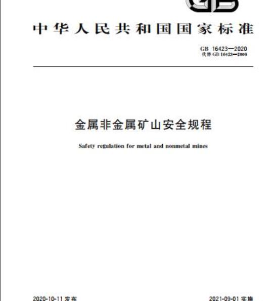 GB 16423-2020.Safety regulation for metal and nonmetal mines.