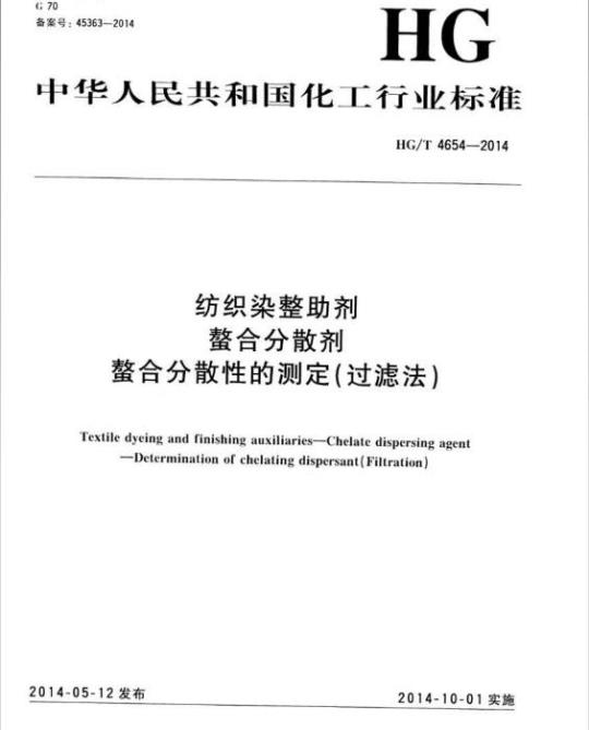 HG/T 4654适用于纺织品前处理加工中螯合分散剂在高碱条件下的鳌合分散性能的测定。