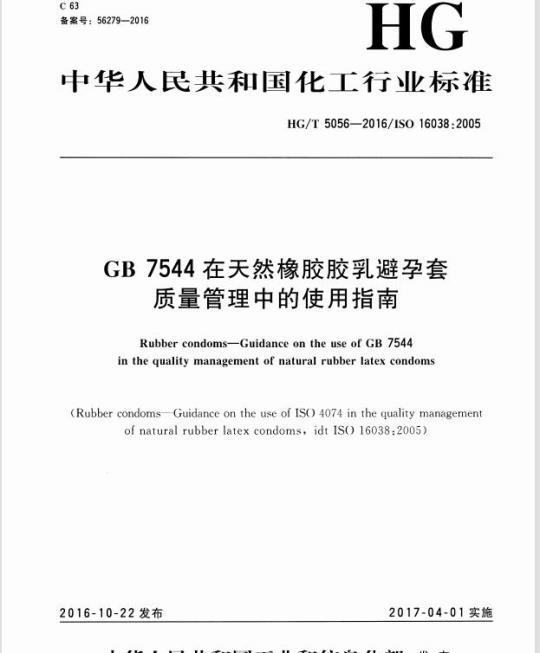 HG/T 5056是GB7544的使用指南,规定了避孕套在开发、生产、质量认证以及采购时涉及的质量问题。