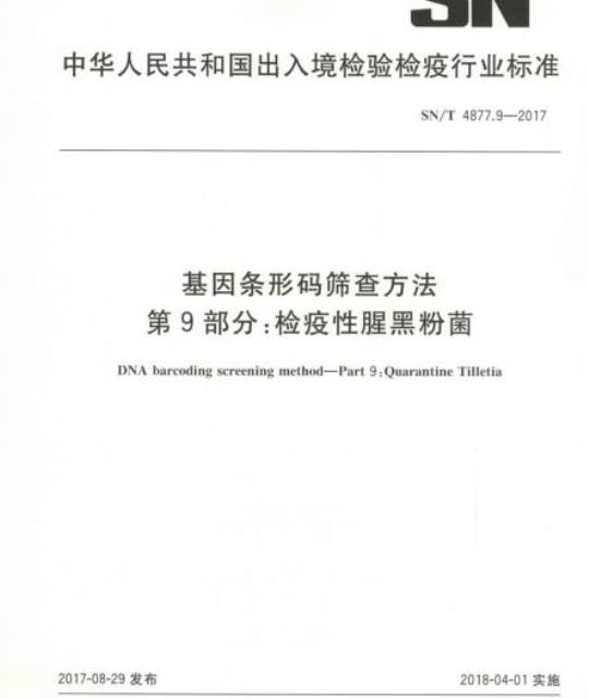 SN/T 4877.9规定了小麦印度腥黑穗病菌Tilletiaindica和小麦矮化腥黑穗病菌Tilletia controversa的DNA条形码筛查中序列的扩增分析及结果判定等。