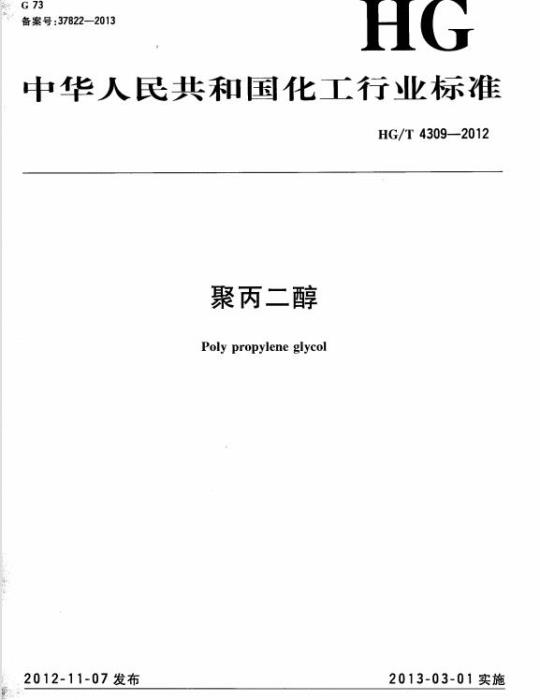 HG/T 4309适用于以丙二醇和环氧丙烷为原料聚合成的聚丙二醇系列产品。该产品主要用于化妆品、涂料、橡胶、增塑剂、润滑油、聚氨酯泡沫塑料等行业。