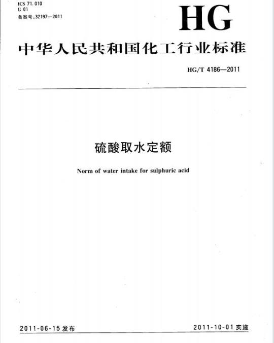 HG/T 4186-2011.Norm of water intake for sulphuric acid.