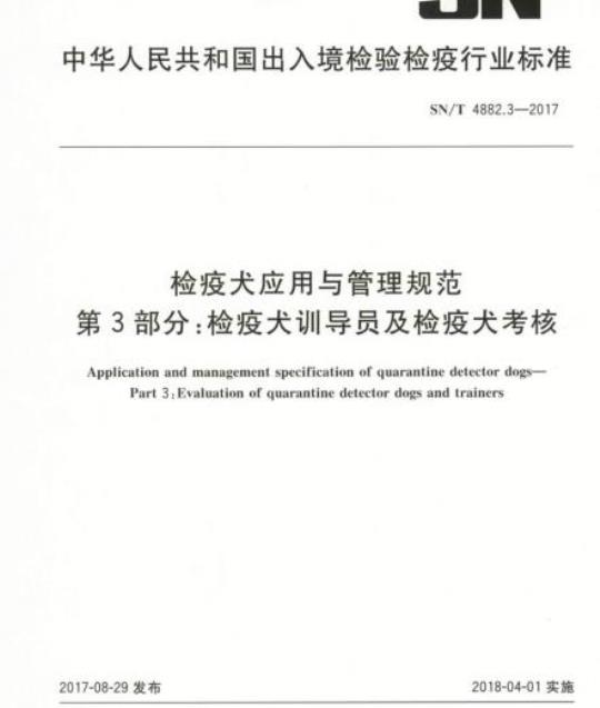 SN/T 4882.3适用于检疫犬训导员及检疫犬的考核。