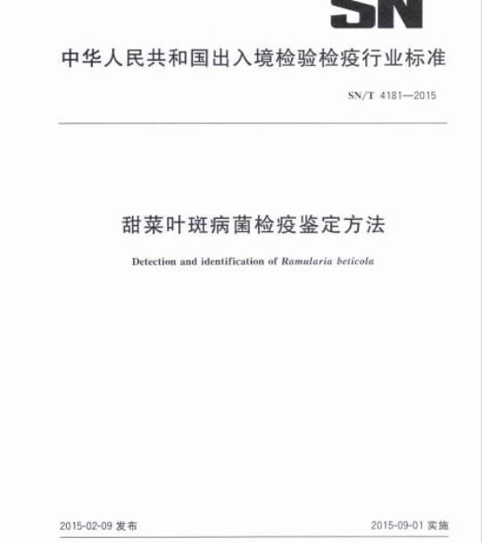SN/T 4181规定了甜菜叶斑病菌的检疫和鉴定方法。