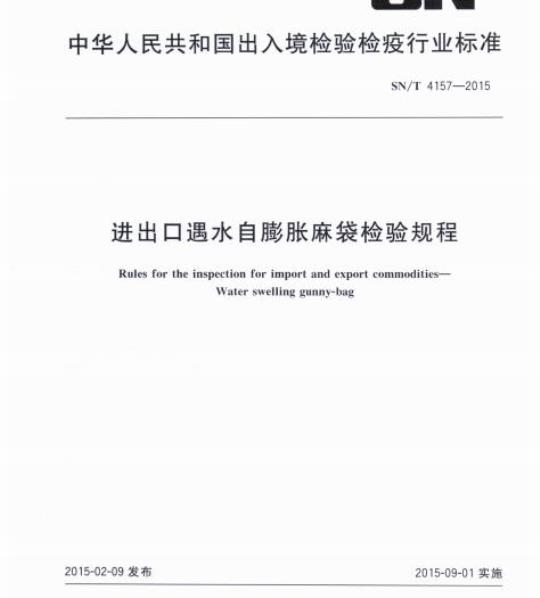 SN/T 4157适用于进出口遇水自膨胀麻袋的检验。