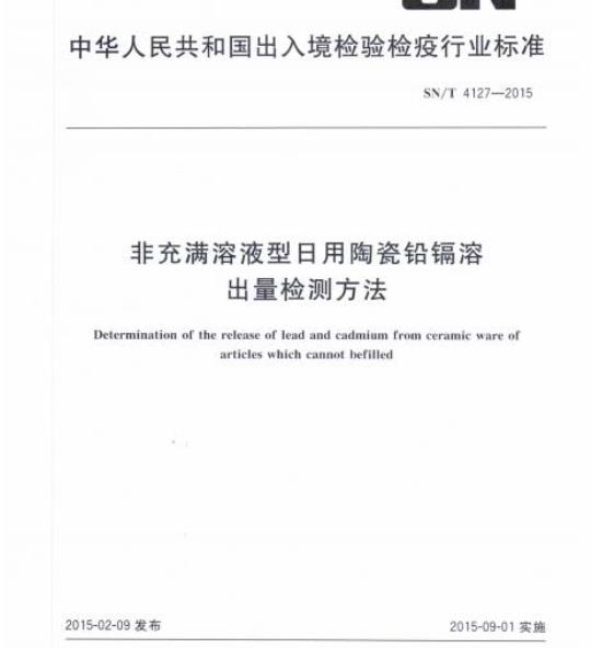 SN/T 4127规定了用于接触食物的非充满溶液型日用陶瓷制品的铅和镉溶出量的检测参考方法。