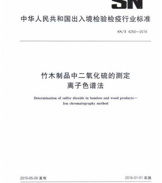 SN/T 4250规定了竹木及竹木复合制品中二氧化硫的离子色谱测定方法。