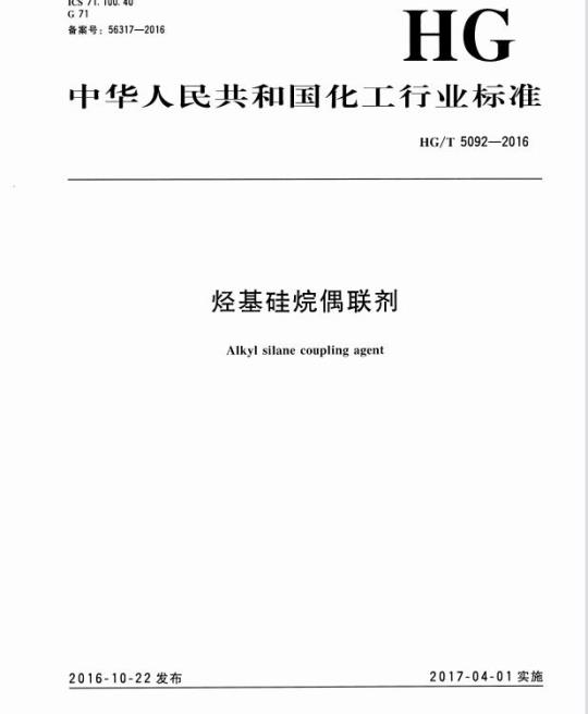 HG/T 5092适用于以丙基三氯硅烷、正辛基三氯硅烷、十二烷基三氯硅烷、十六烷基三氯硅烷为主要原料,经酯化反应制成的烃基硅烷偶联剂。