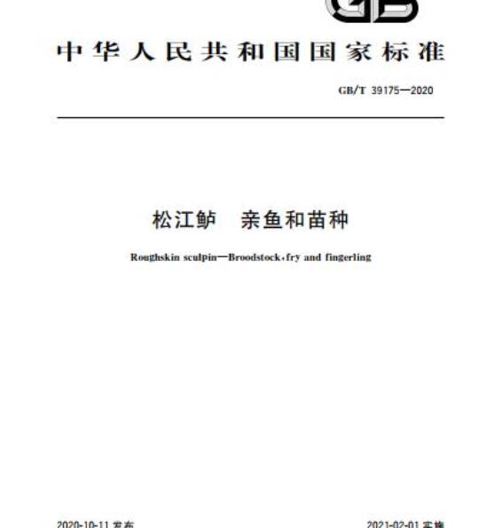 GB/T 39175-2020.Roughskin sculpin-Broodstock , fry and fingerling.