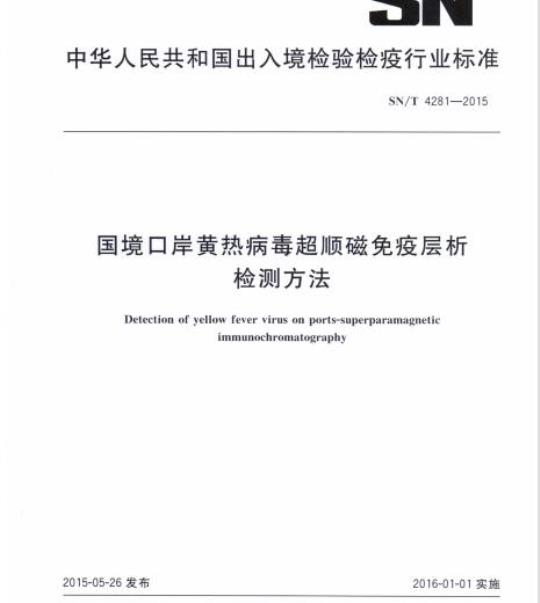 SN/T 4281-2015.Detection of yellow fever virus on ports superparamagnetic immunochromatography.
