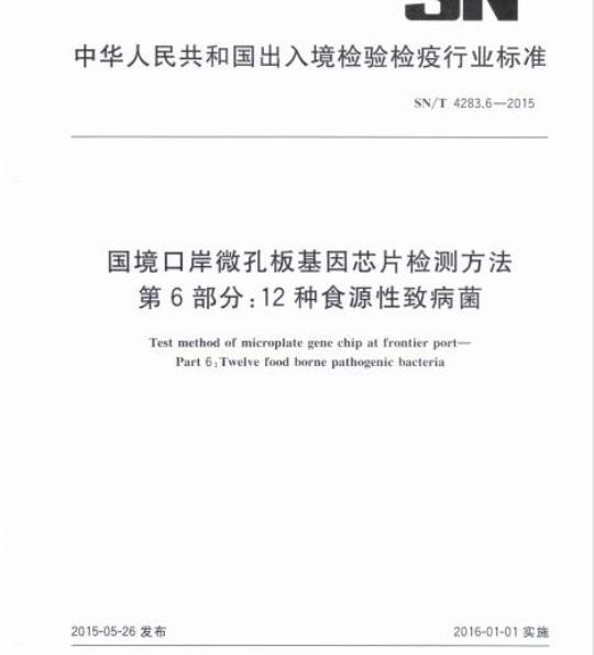 中文名称:国境口岸微孔板基因芯片检测方法第6部分:12种食源性致病菌