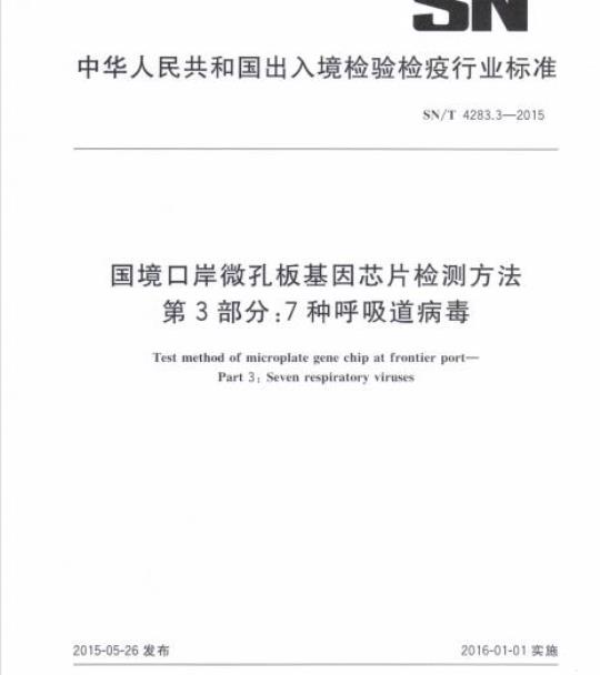 SN/T 4283.3适用于在国境口岸实验室采用微孔板基因芯片技术对上述7种呼吸道病毒进行检测。
