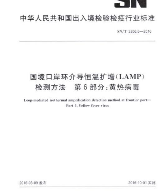 SN/T 3306.6规定了国境口岸黄热病毒环介导恒温扩增检测方法。